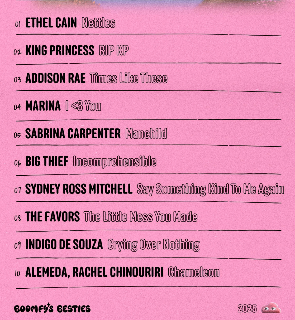 We feature the Best of the Week content: the latest music, TV shows, social media moments, curated hyperlinks to cool internet finds, an up to date style section, and our Top 10 Songs of the Week. This content is co-curated with our Bestie of the Week, offering an intimate window into the day-to-day lives of your favorite musicians, artists, and bands. Past Besties include: Gigi Perez, The Backseat Lovers, The Aces, and The Last Dinner Party.